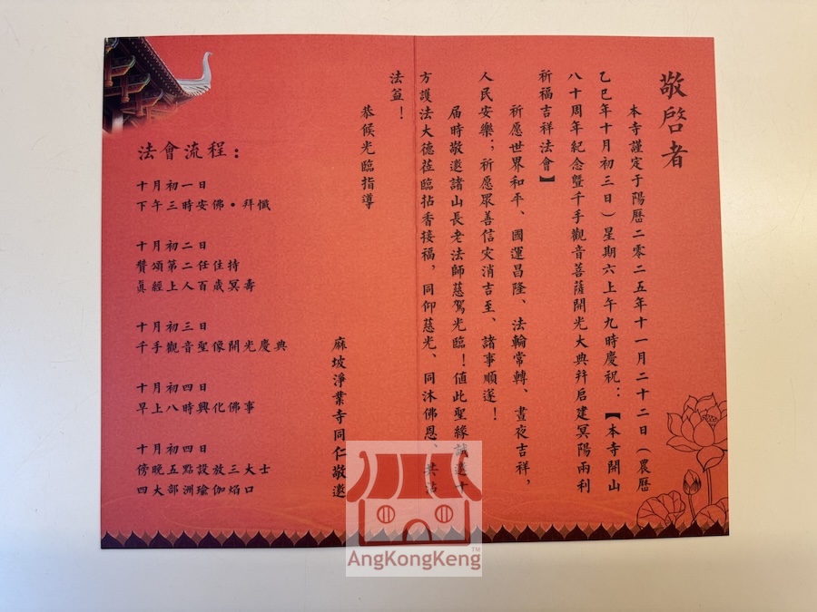 净业寺庆祝开山八十周年暨千手观音圣像开光喜庆(22/11/2025)